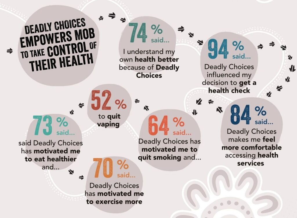 The study, by research consultancy group Pollinate, found that Deadly Choices successfully empowers Aboriginal and Torres Strait Islander peoples to take control of their health.